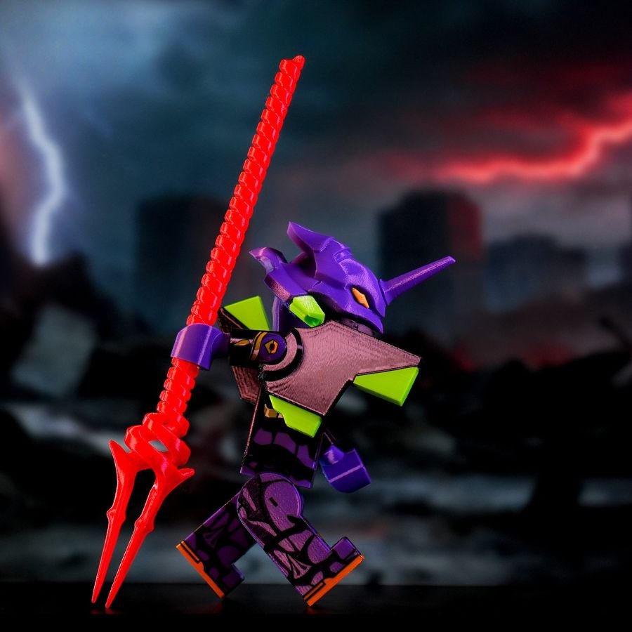 Evangelion Unit-01 is the most iconic and unsettling of NERV’s Evangelions, standing at the very heart of Neon Genesis Evangelion. Officially designated as a humanoid weapon to combat the Angels, Unit-01 is in truth a biomechanical being restrained by armor and control systems. Its distinctive purple coloring and horned helmet give it an almost demonic silhouette, reinforcing the sense that it is something barely contained. Piloted primarily by Shinji Ikari, Unit-01 becomes an extension of his fear, rage, and desire for connection. More than a machine, it is a living entity with a will of its own.