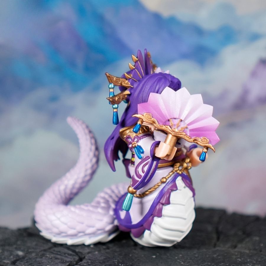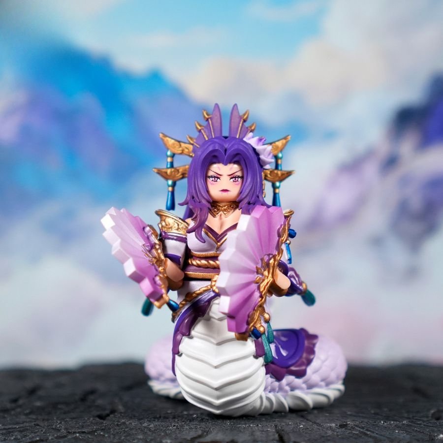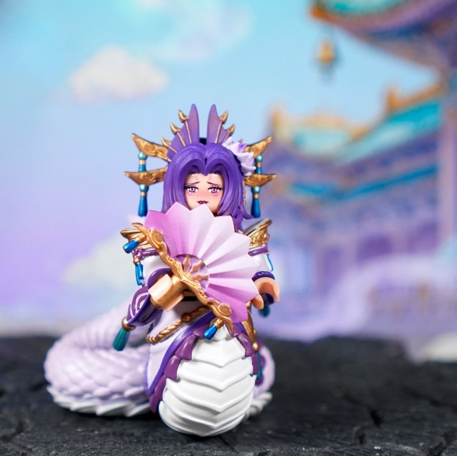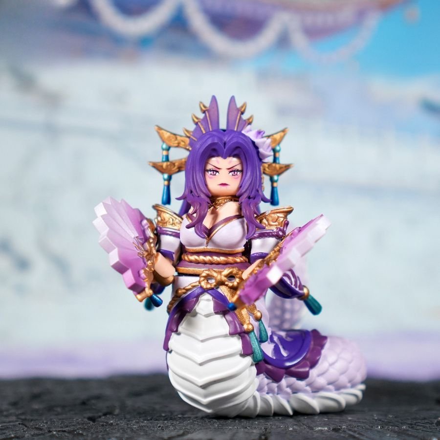 Spirit Blossom Cassiopeia is a haunting vision of beauty and sorrow, reborn in the ethereal realm between life and death. Once a mortal whose charm masked deadly ambition, she now slithers through the Spirit Blossom festival as a spectral temptress, her voice as alluring as it is dangerous. Her serpentine form shimmers with petals and light, a deceptive reflection of grace concealing her venomous nature.