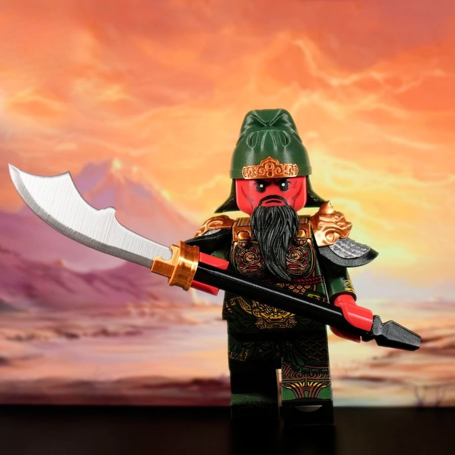 Guan Yu, known as “The God of War” in Chinese folk tradition, is one of the most revered figures in Romance of the Three Kingdoms. A sworn brother of Liu Bei and Zhang Fei, he was celebrated for his unmatched martial skill, fierce loyalty, and unshakable sense of righteousness. With his trademark long beard, red face, and the Green Dragon Crescent Blade, he became an icon of battlefield valor.